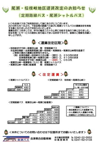 いつも会津バスをご利用いただきまして誠にありがとうございます。 この度、今般の価格高騰の影響を受け、尾瀬・桧枝岐方面の企画乗車券を下記の金額に改定させて頂きます。 より一層のサービス向上に努めて参りますので、何卒ご理解くださいますようお願い…