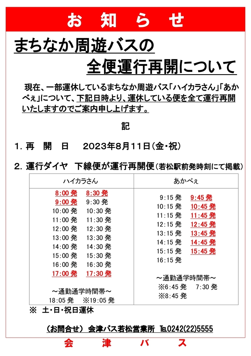 ■運行便(全便運行に戻ります。会津若松駅前発時刻にて掲載)